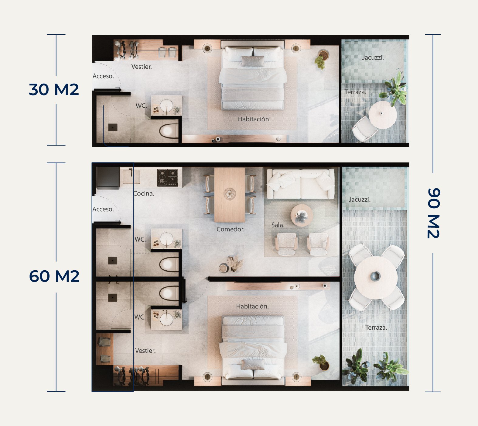 Descubre nuestras diferentes opciones de distribución* y encuentra el espacio ideal para generar rentabilidad y vivir momentos extraordinarios.